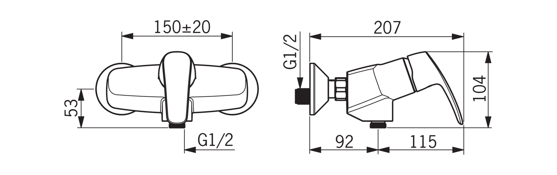 Douchemngkr 1/2" doucheafv beneden 1/2"Skoppeling HANSAPINTO HANSA
