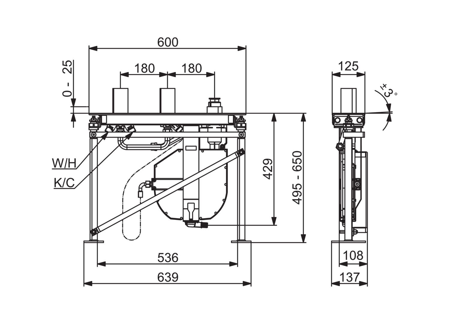 HANSACOMPACT 3-gats inbouwdeel badrandsysteem met vloersteun HANSA