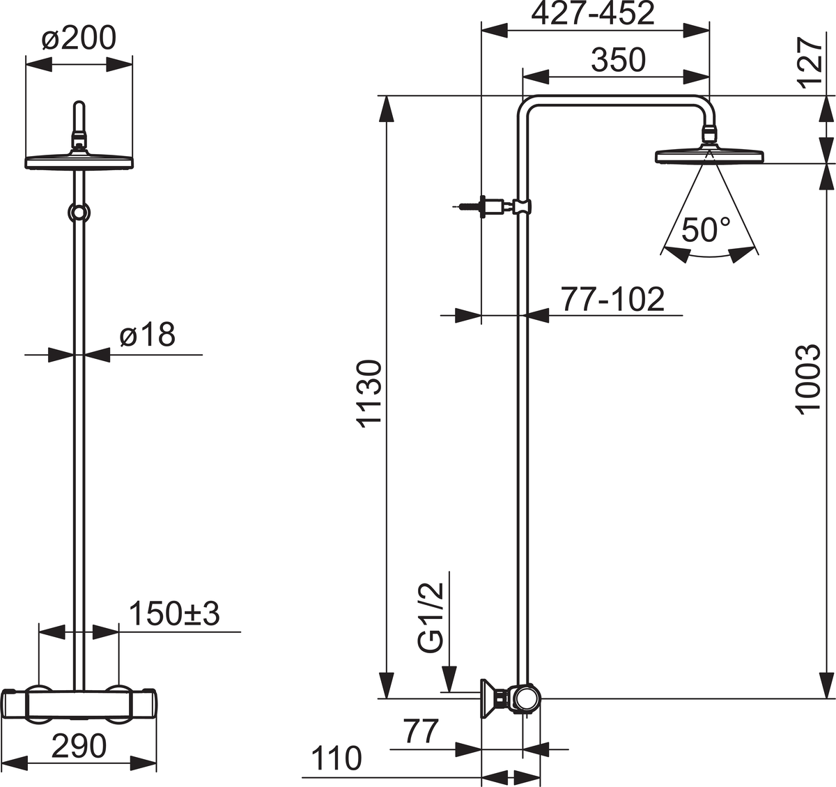 Thermostatisch douchesysteem zonder handdouche 1110mm HANSAMICRA HANSA