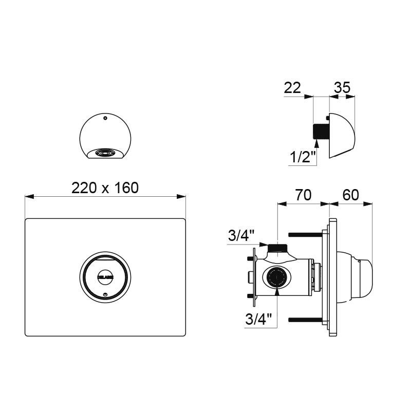 Douchemengkraan waterdicht inb. set 2/2 +790box Delabie