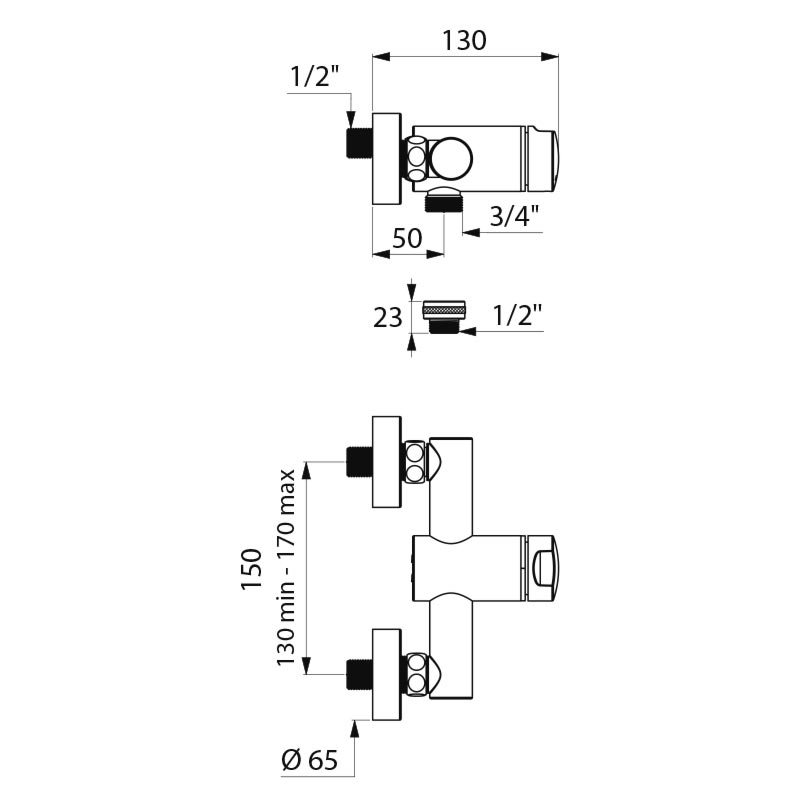 Douchemengkraan -3 150mm zelfsluitend m S-kopp. Delabie
