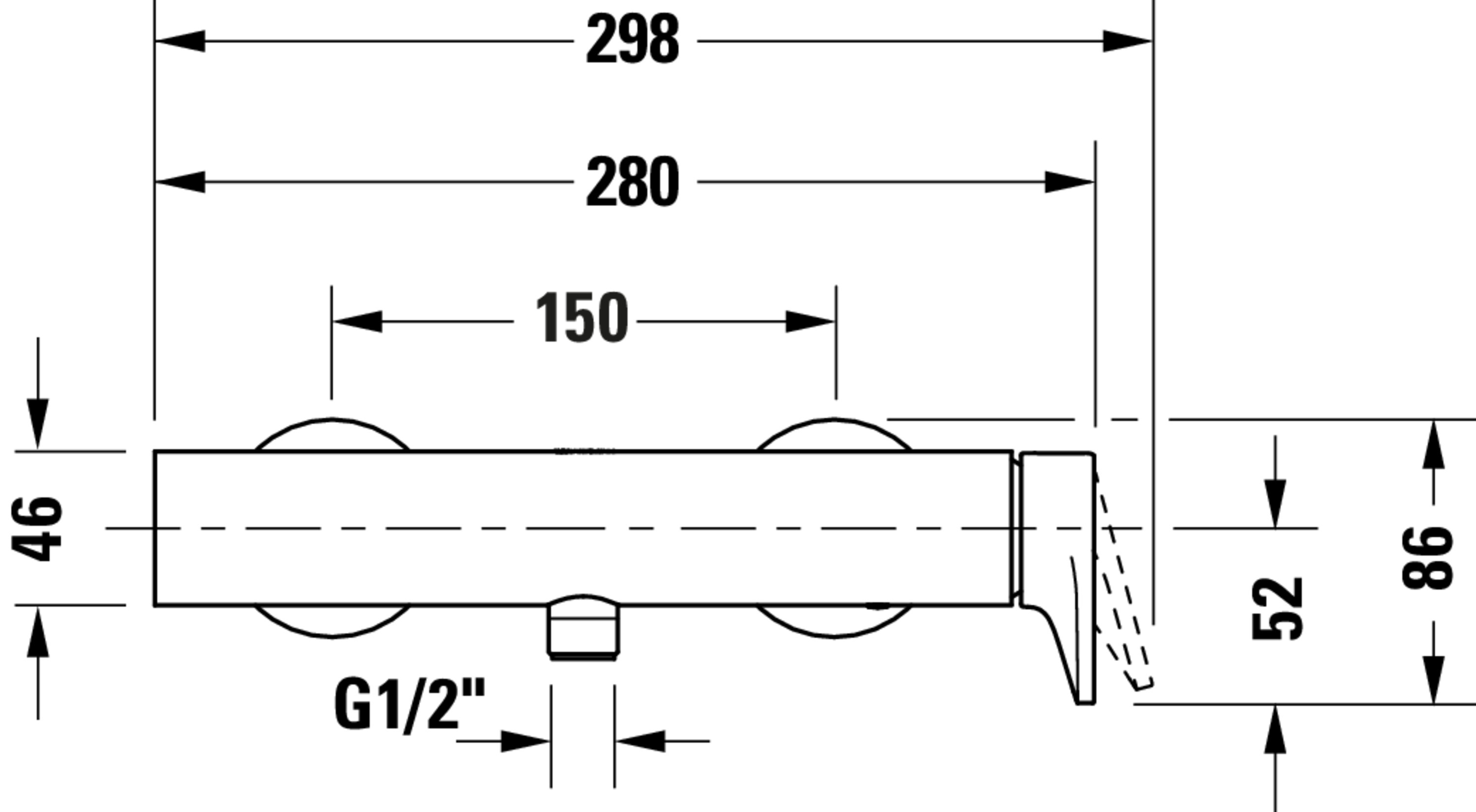 Tulum 1-hendel douchemengkraan opbouw zw. M 280x113x86mm Duravit