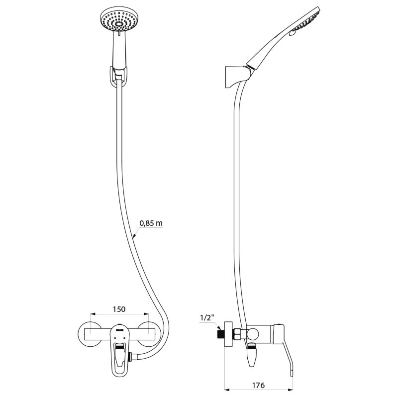 Doucheset met leegloop + mengkraan 2739EPS S-koppeling Delabie