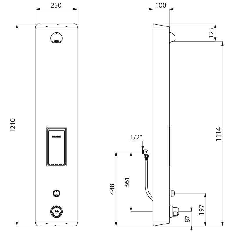Douchepaneel RVS verb.aansl. 30sec+zeepschl Delabie