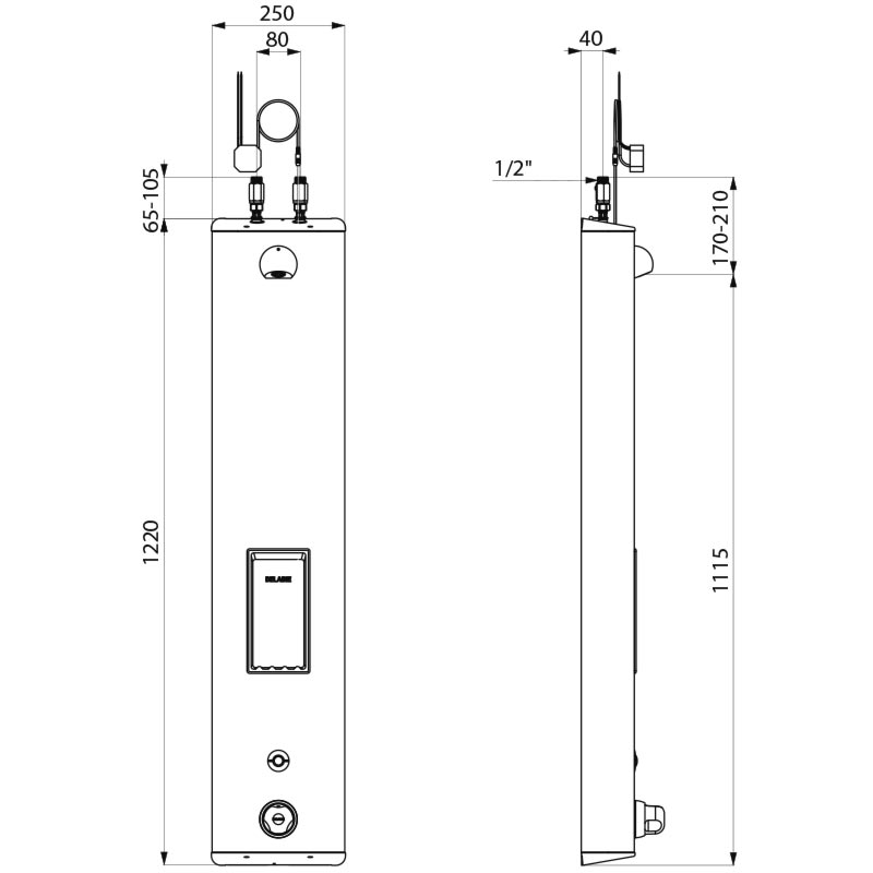 Douchepaneel thermostatisch 230/6V RVS bovenaansluiting + zeepschaal Delabie