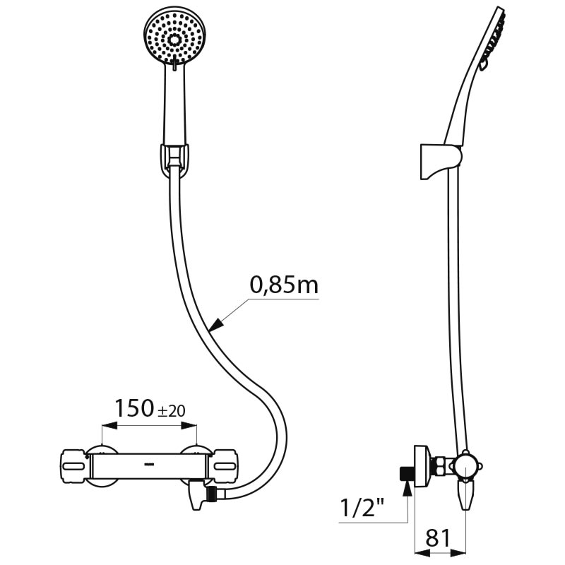 Doucheset + leegloop thermostatische mengkraan H9739 S/C kop Delabie