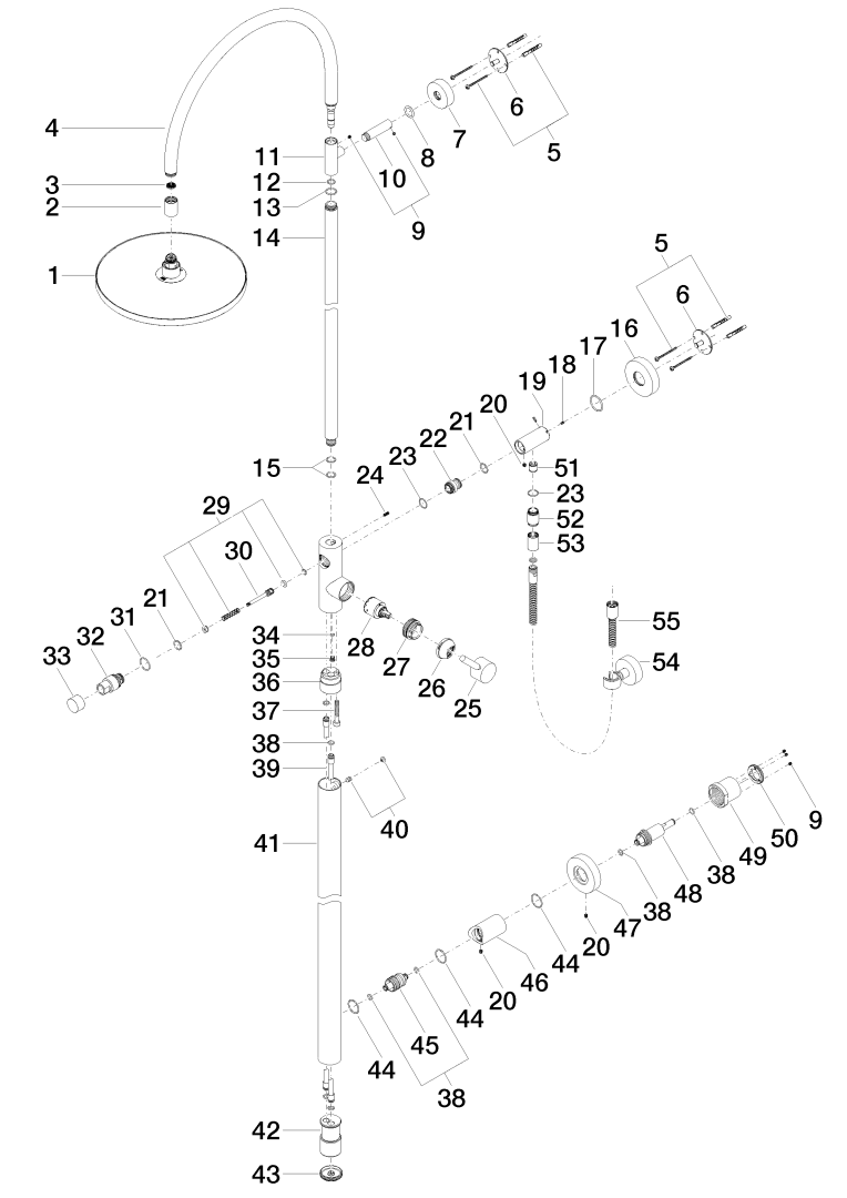 Kraanbuis douche-1-hendel mengkraan flowreduc plat.geb Dornbracht