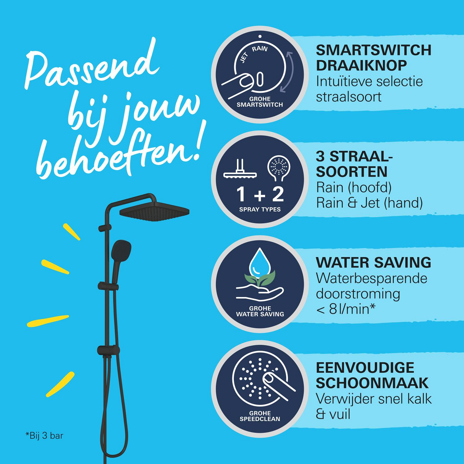 Vitalio Comfort 250 douchesysteem met omstelkraan matte black (mat zwart) Grohe