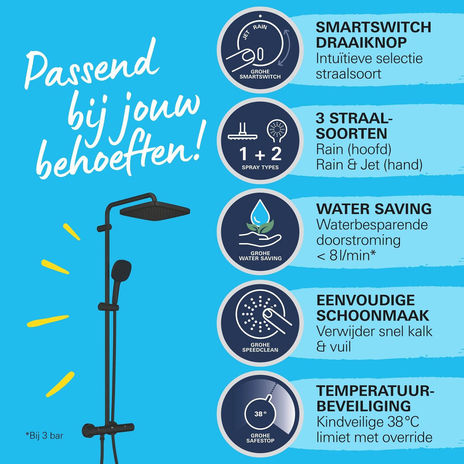 Vitalio Comfort 250 douchesysteem met therm.kr. matte black (mat zwart) Grohe