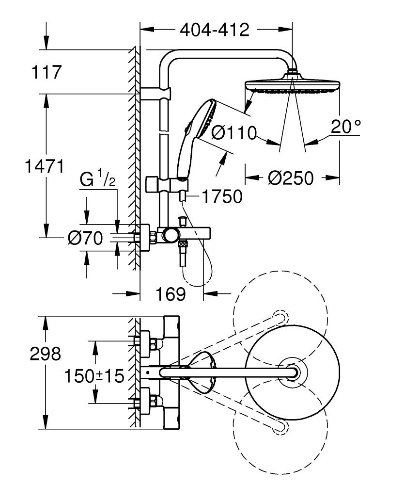 Vitalio Start 250 douchesysteem met badthermostaat matte black (mat zwart) Grohe