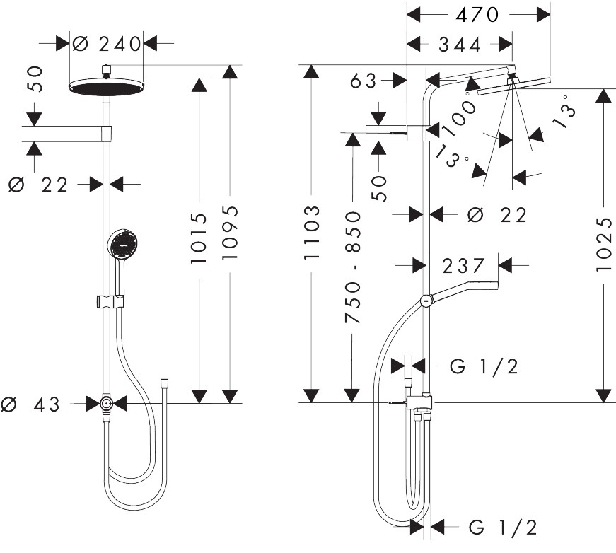 Showerpipe Activera S 240 1 straalsoort EcoSmart Reno Varia mat zwart hansgrohe