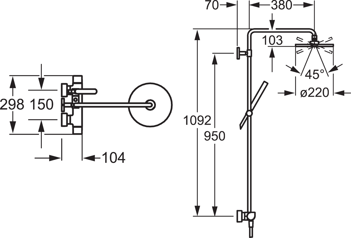Tempra Style douchesysteem met thermostaat chroom hoh 150mm incl. s-koppelingen HANSA