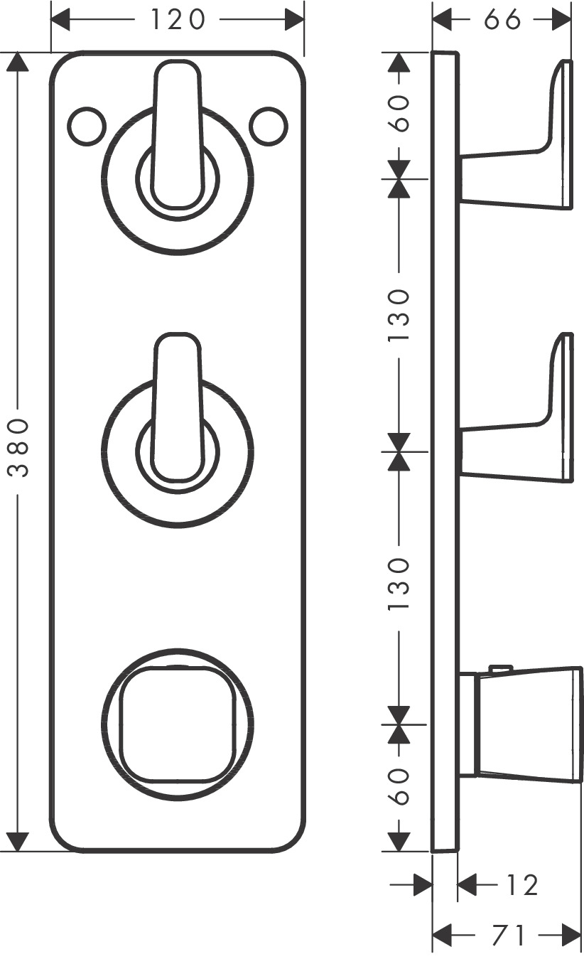 Afbouwdeel termostaat module 380/120 pl v 2 douchefuncties brushed black chrome Citterio-C hansgrohe