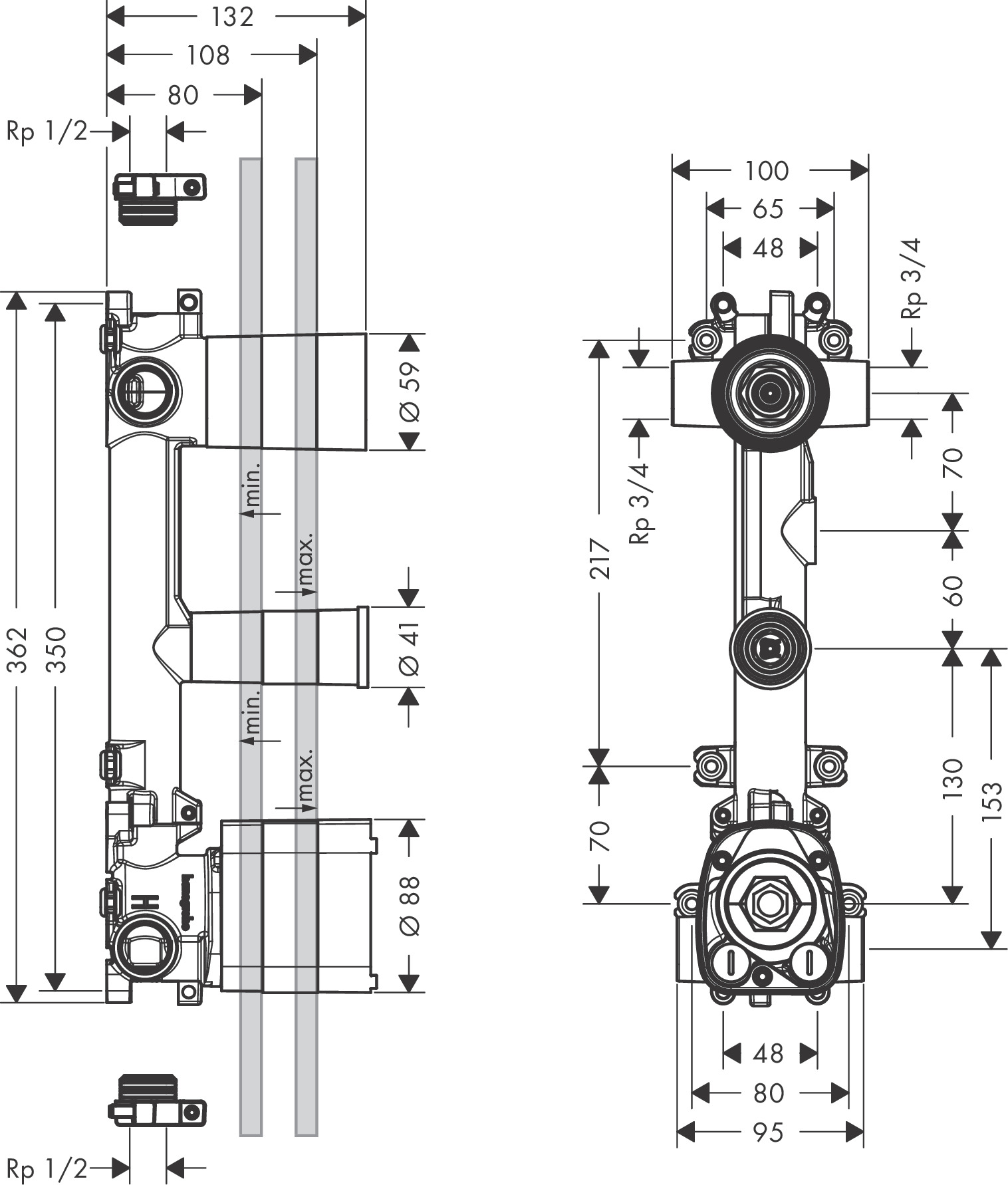 Axor Citterio E inbouwdeel thermostaat module met stop/omstelkraan AXOR