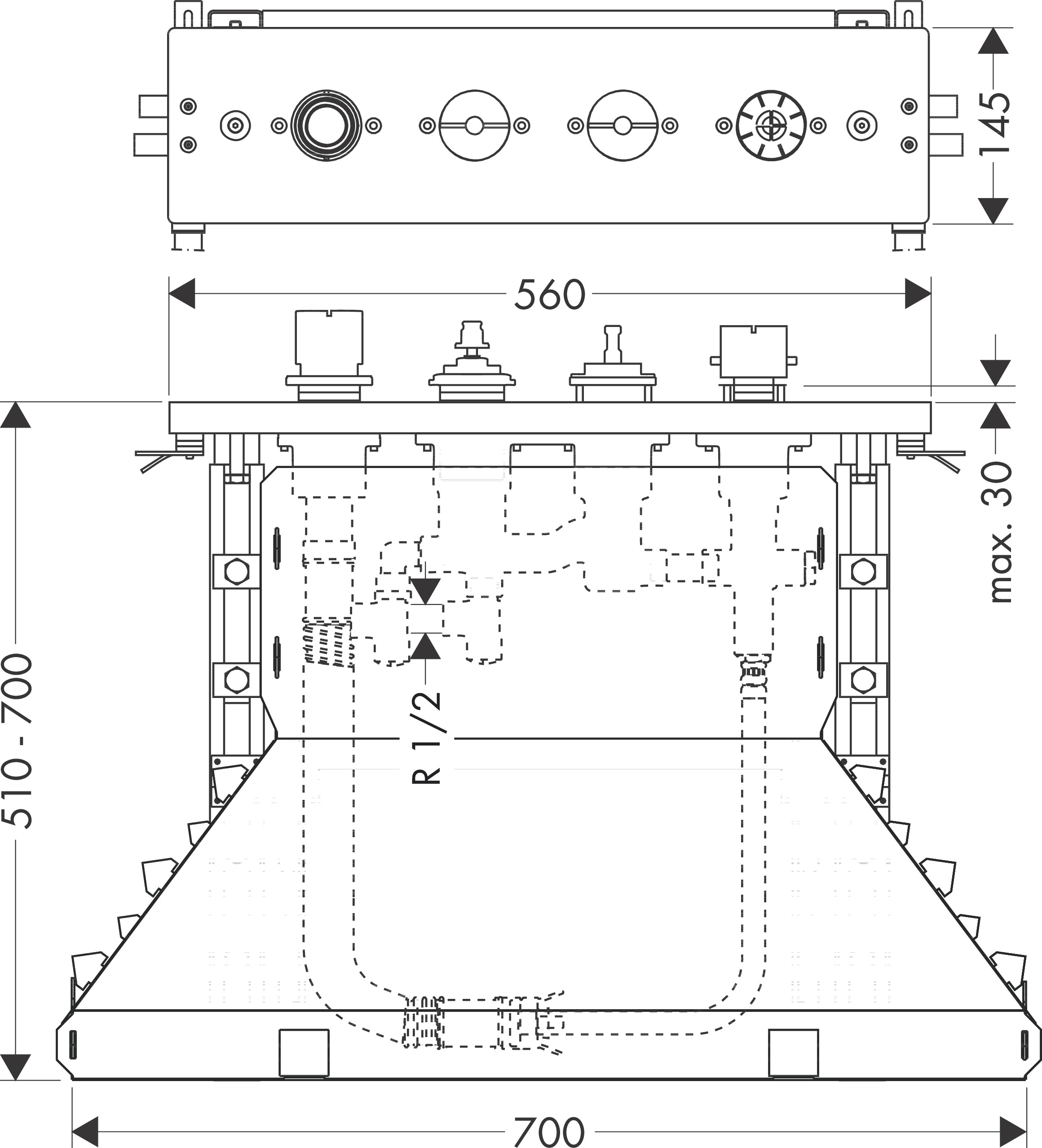 Axor inbouwdeel v.4-gats tegelrandthermostaat met Secuflex box AXOR