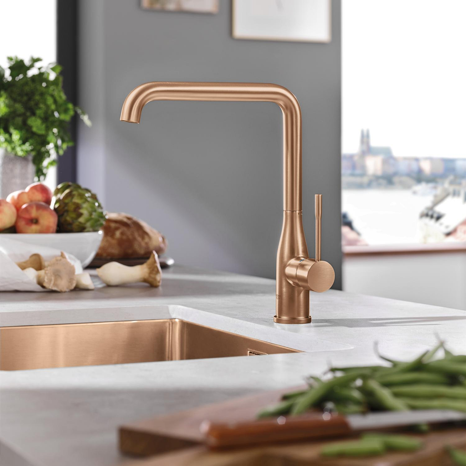 Essence keukenmengkraan L-uitloop dualspray warm sunset geborsteld (mat bronskleurig) Grohe