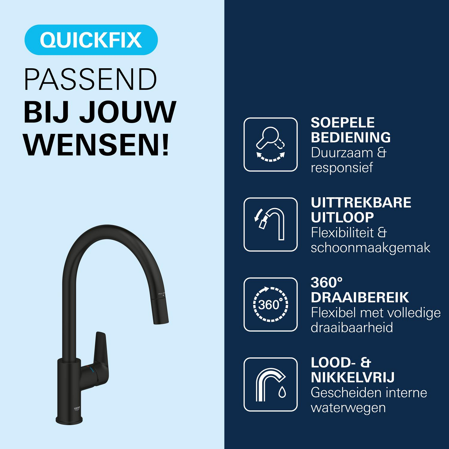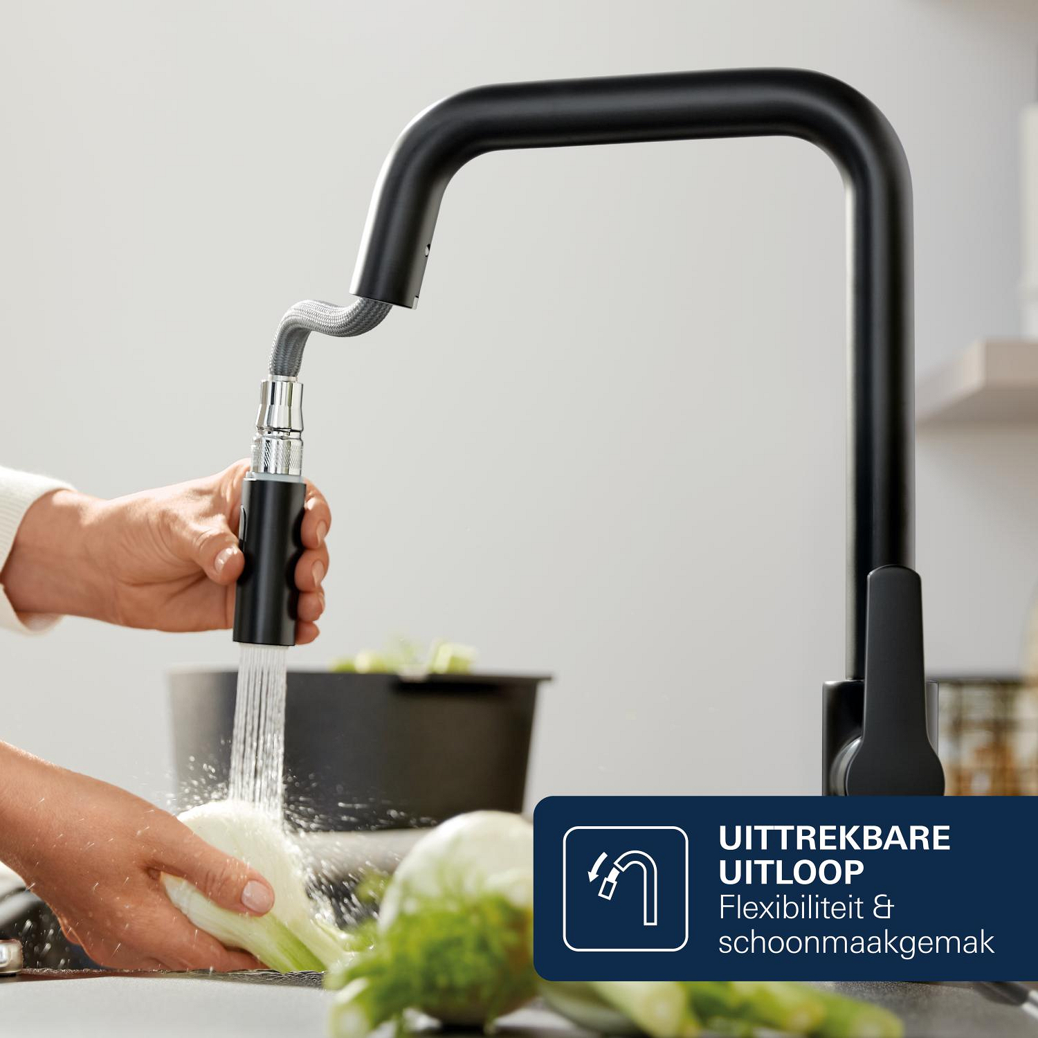 Keukenmengkraan Hoge Uitloop Uittrekbare Mousseur Mat Black Grohe