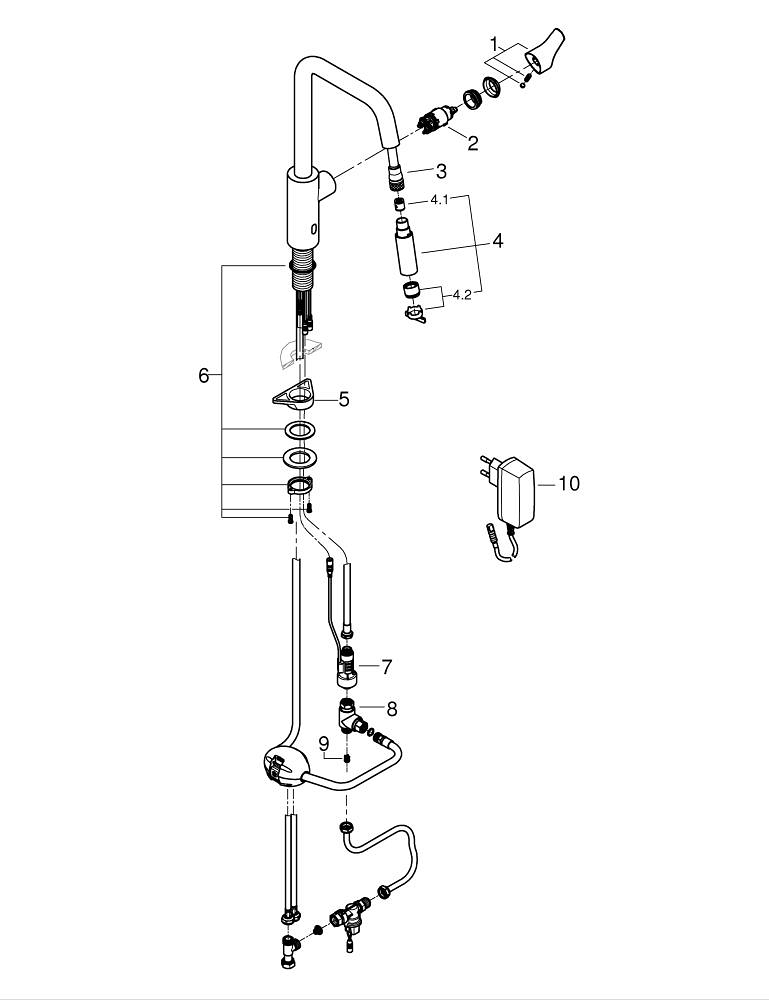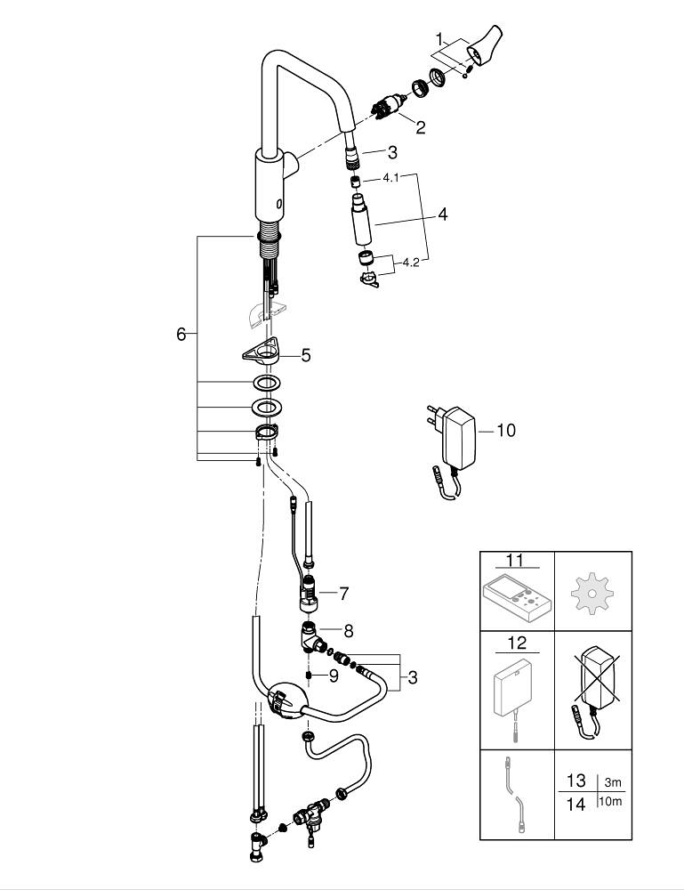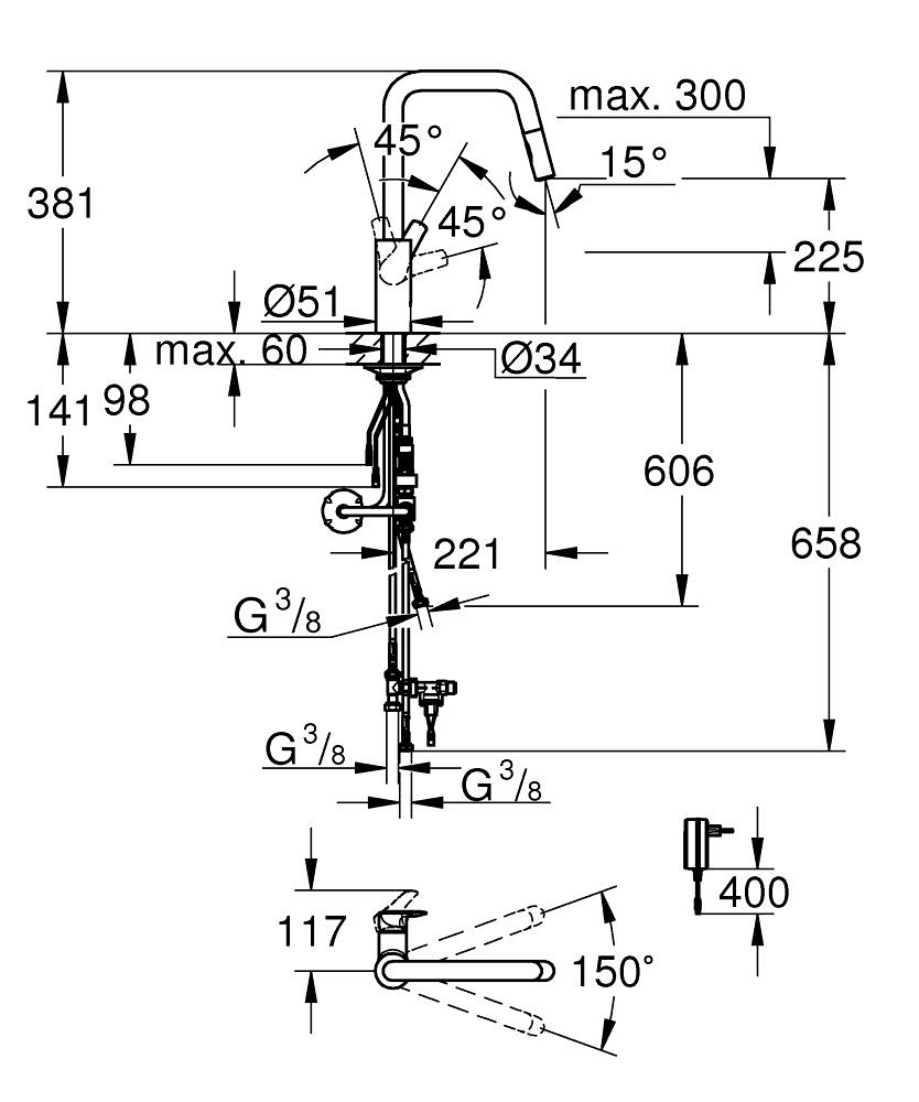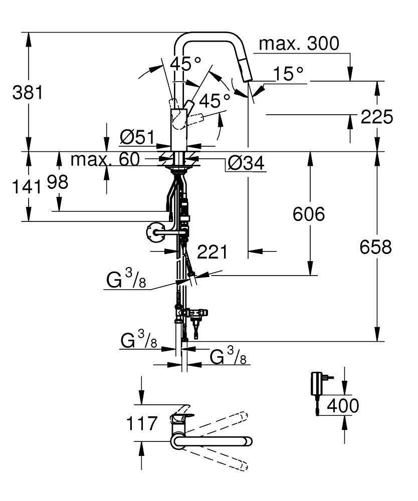 Eurosmart E Hybrid elektronische keukenmengkraan U-Uitloop Dual Spray chroom Grohe