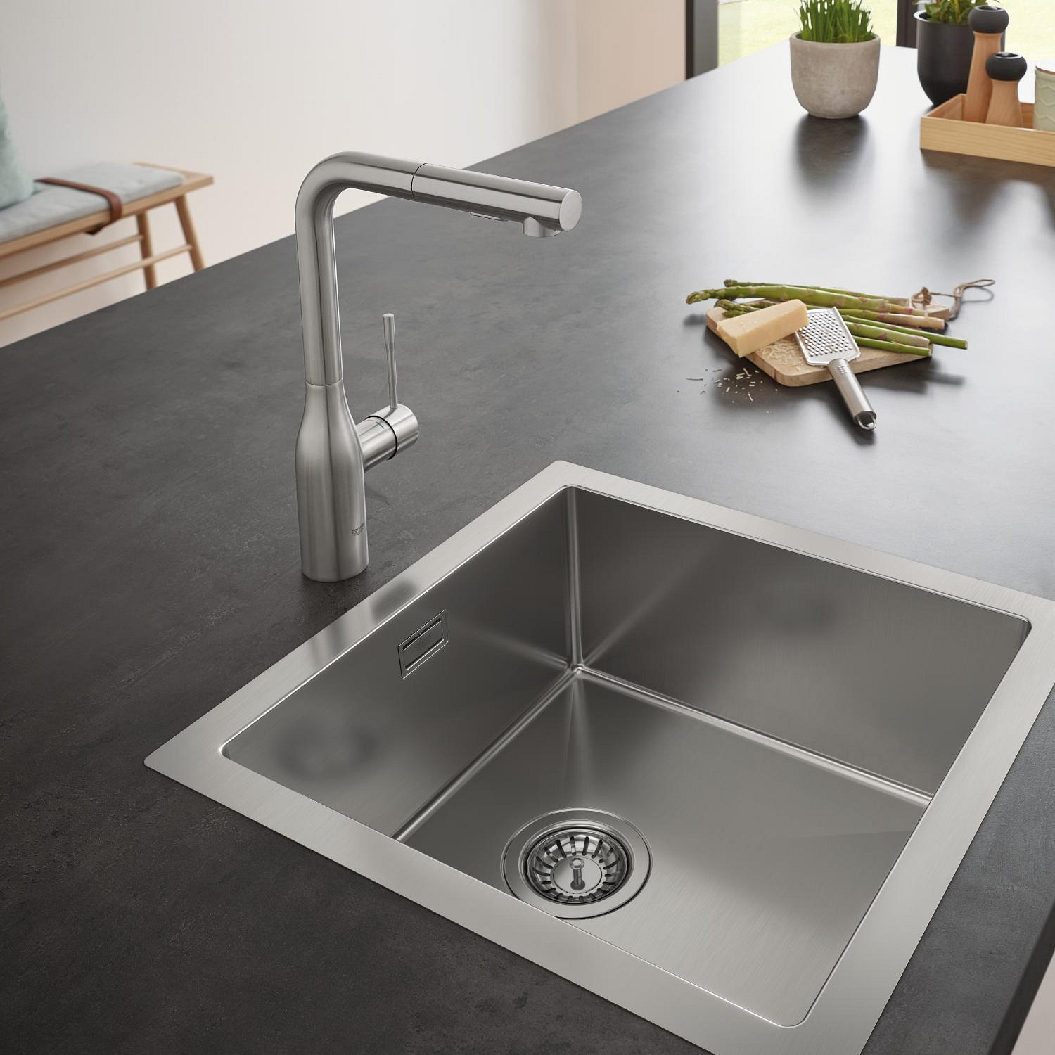 Essence keukenmengkraan superst. L-uitloopmet uittrekbare dualspray supersteel (rvs look) Grohe