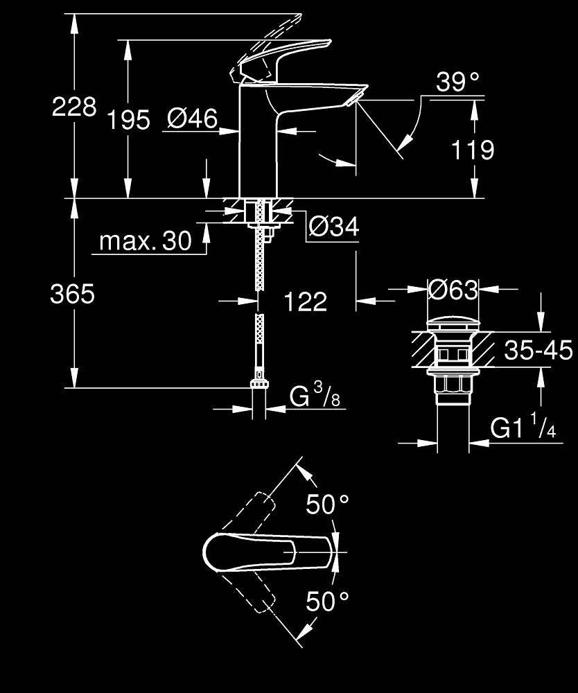 Eurosmart M-size wastafelmengkraan energy saving gladde body incl. push-open plug 1.1/4" (prof) Grohe