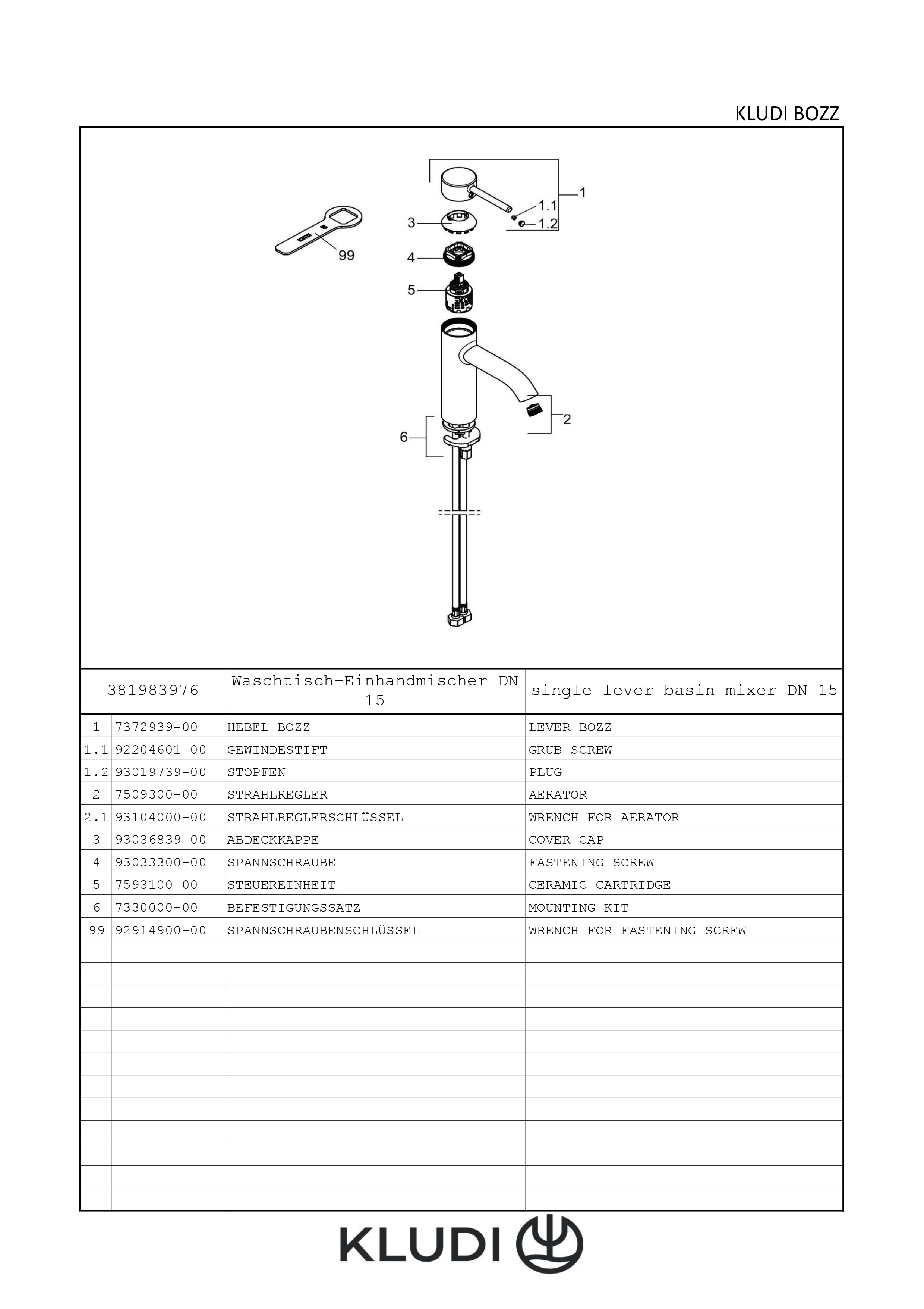 Bozz Wast.Mngkr. Z.Waste 100 Cs Mat.Zw Kludi