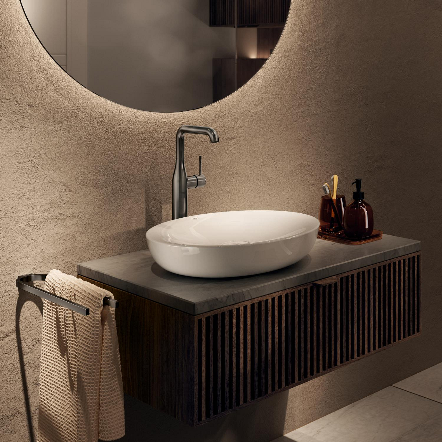 Essence XL-size opzetw.mengkr.hoog hard graphite geborsteld (mat donker grijs) gladde body Grohe