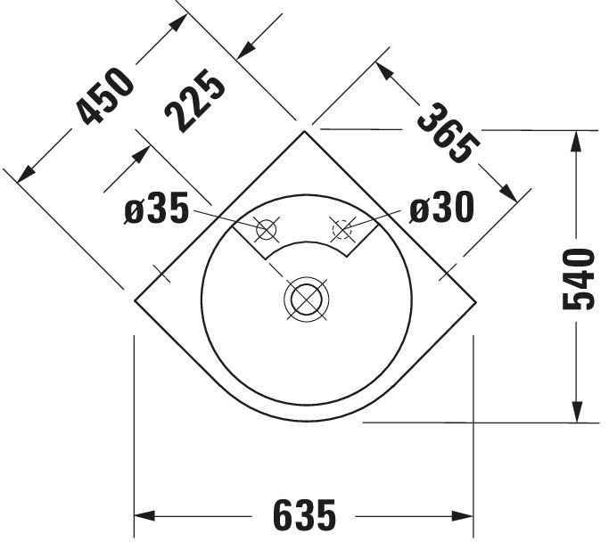 ARCHITEC #044845 hoekfontein 635mm wit met kraangat positie zeepdispenser: rechts (voorgestoken) Duravit