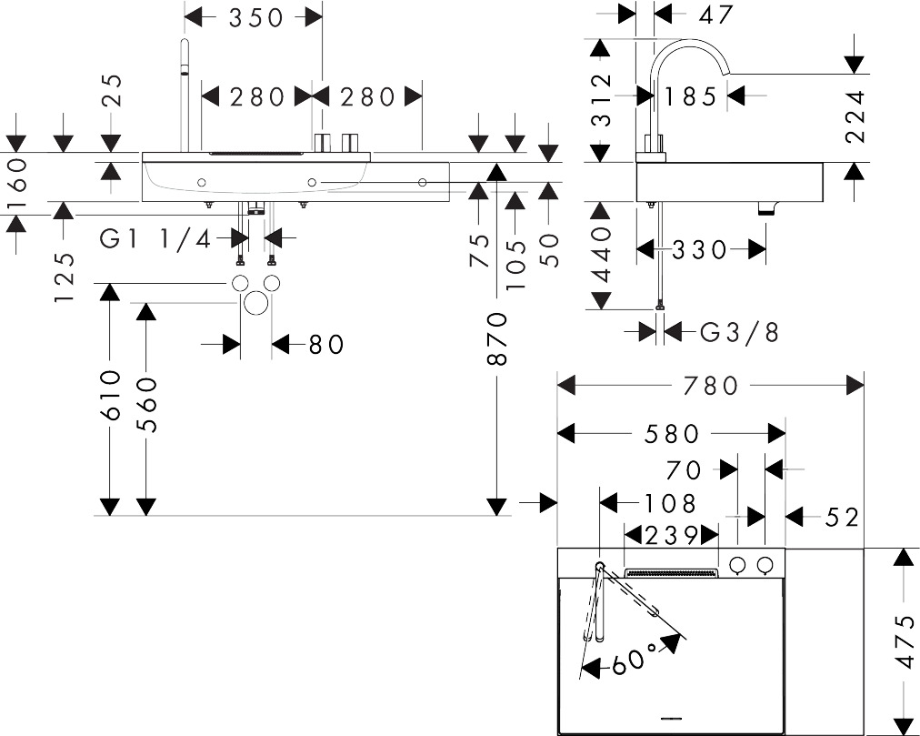 Wastafel Avalegra AquaUnit 780/475 Brushed Bronze hansgrohe