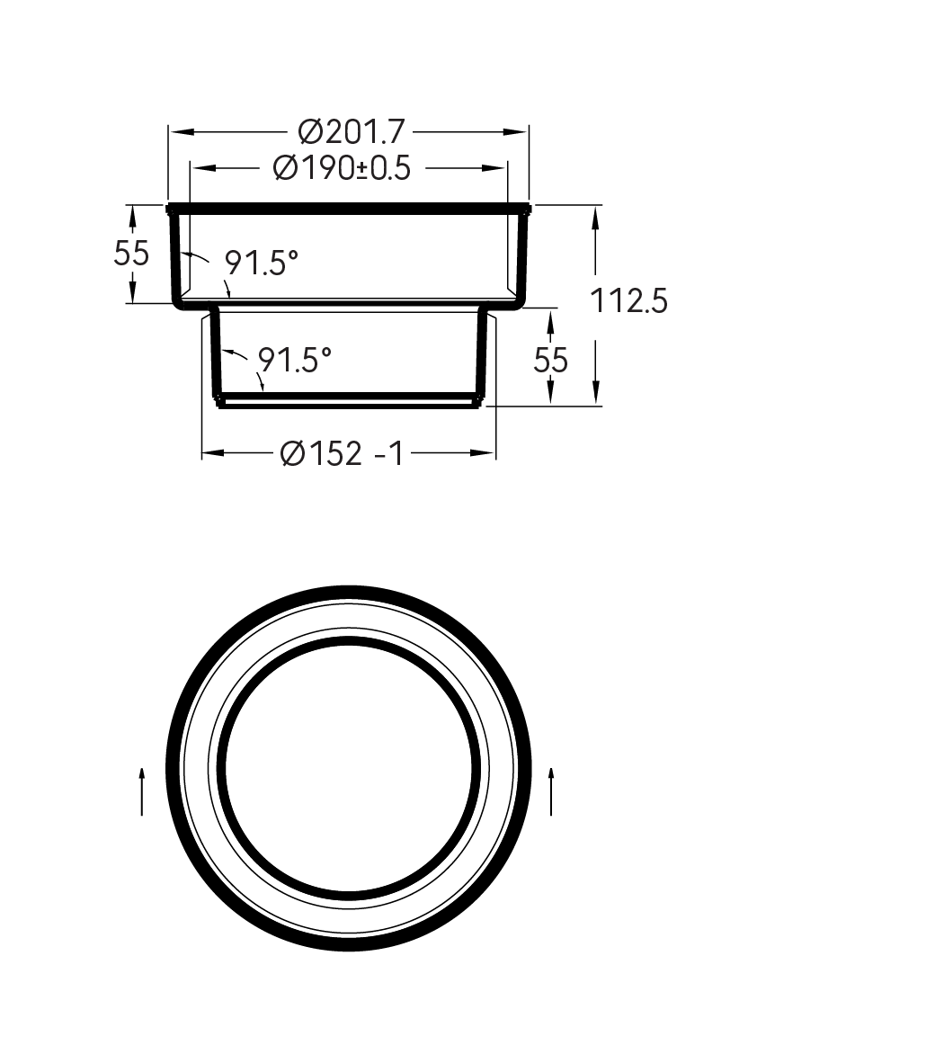 - Nom. kanaaldiameter aansluiting 1: 160 mm