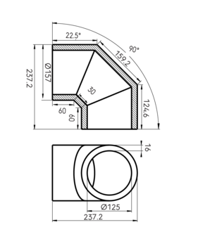 - Bochthoek: 90 °