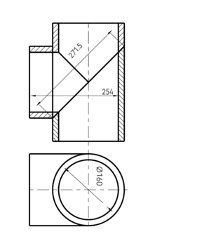 - Nom. kanaaldiameter aansluiting 1: 160 mm