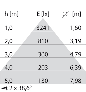 - Lichtverdeling: Symmetrisch