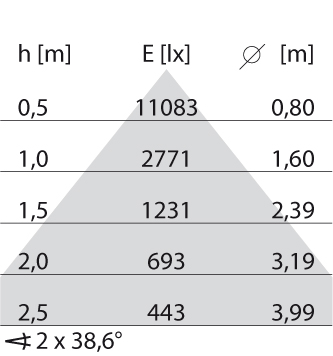 - Lumenbehoud bij gemiddelde levensduur van 75.000 uur bij 25 °C omgeving (tq): 55 %