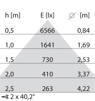 - Lichtverdeling: Symmetrisch
