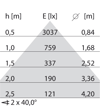 • Lumenbehoud bij gemiddelde levensduur van 75.000 uur bij 25 °C omgeving (tq): 55 %