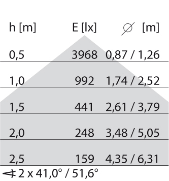 - Lumenbehoud bij gemiddelde levensduur van 75.000 uur bij 25 °C omgeving (tq): 55 %