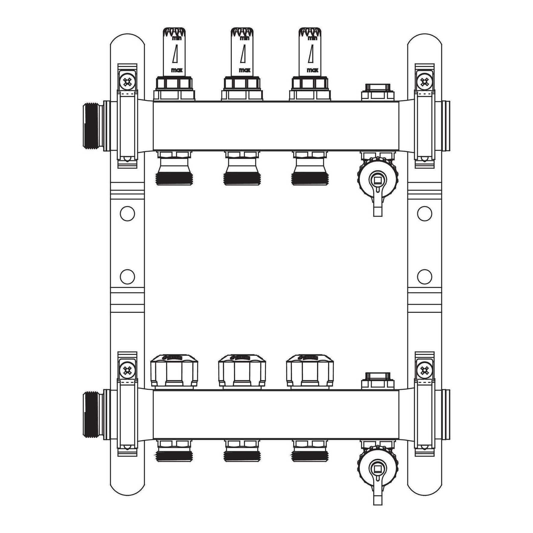 Verdeler HKV-D 3-groeps Easyflow RVS MFI min/max incl. debietmeters REHAU