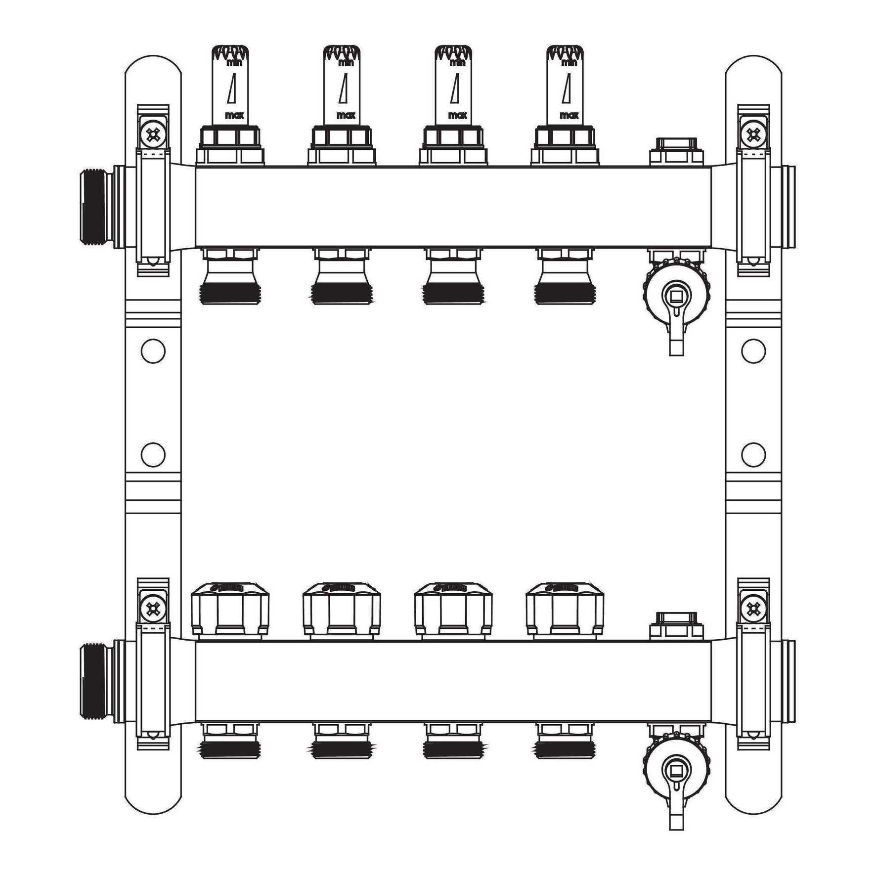 Verdeler HKV-D 4-groeps Easyflow RVS MFI min/max incl. debietmeters REHAU
