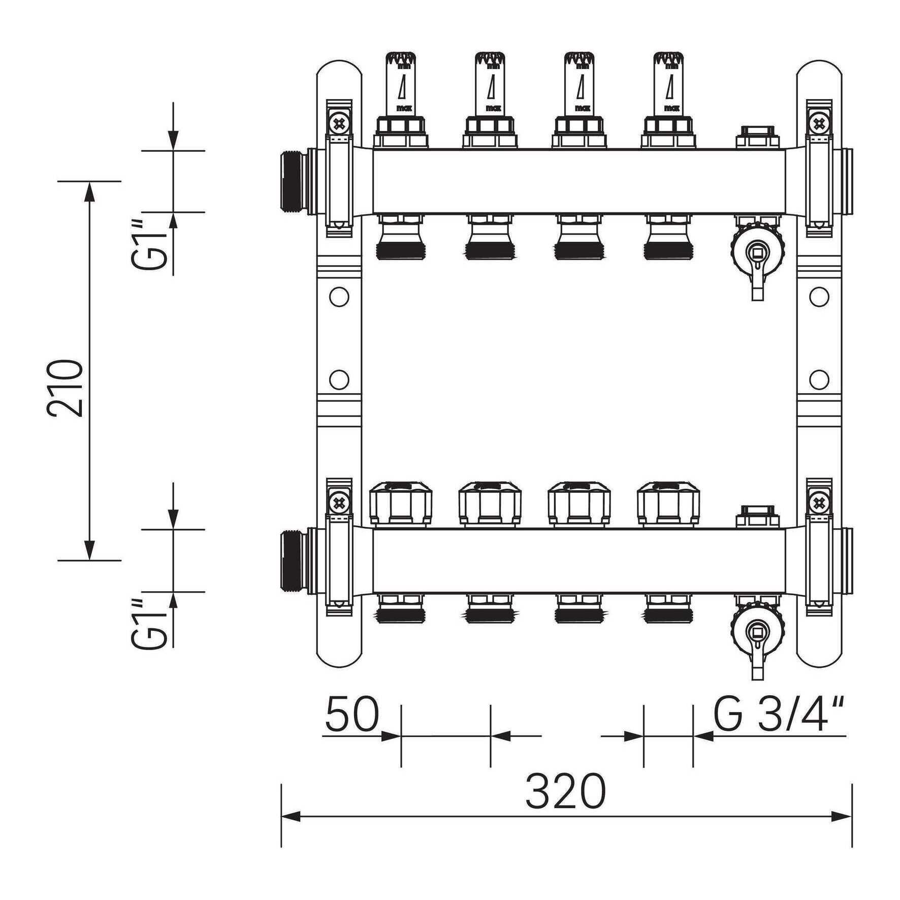 • Nom. diameter secundair: 3/4" (20)