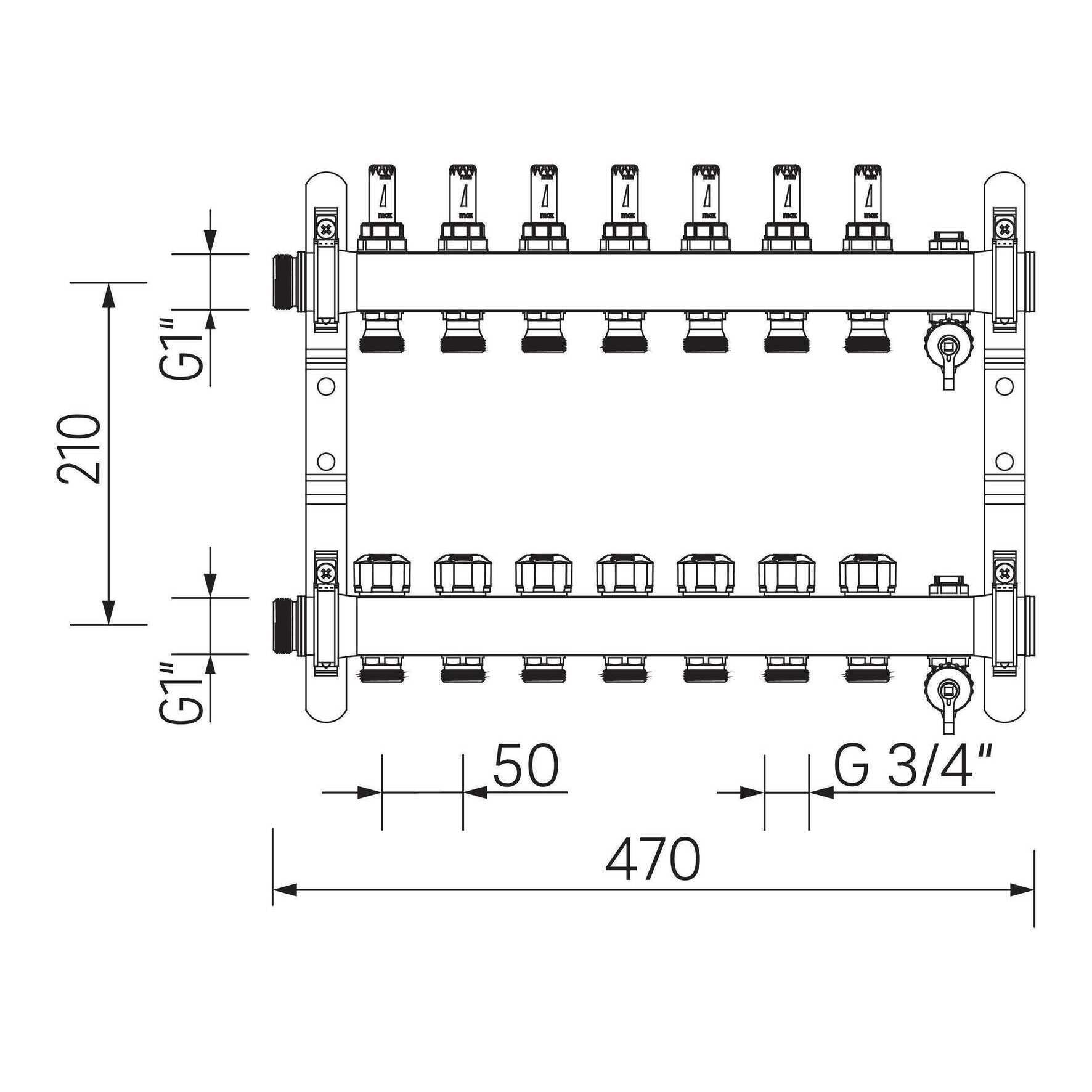 Verdeler HKV-D 7-groeps Easyflow RVS MFI min/max incl. debietmeters REHAU