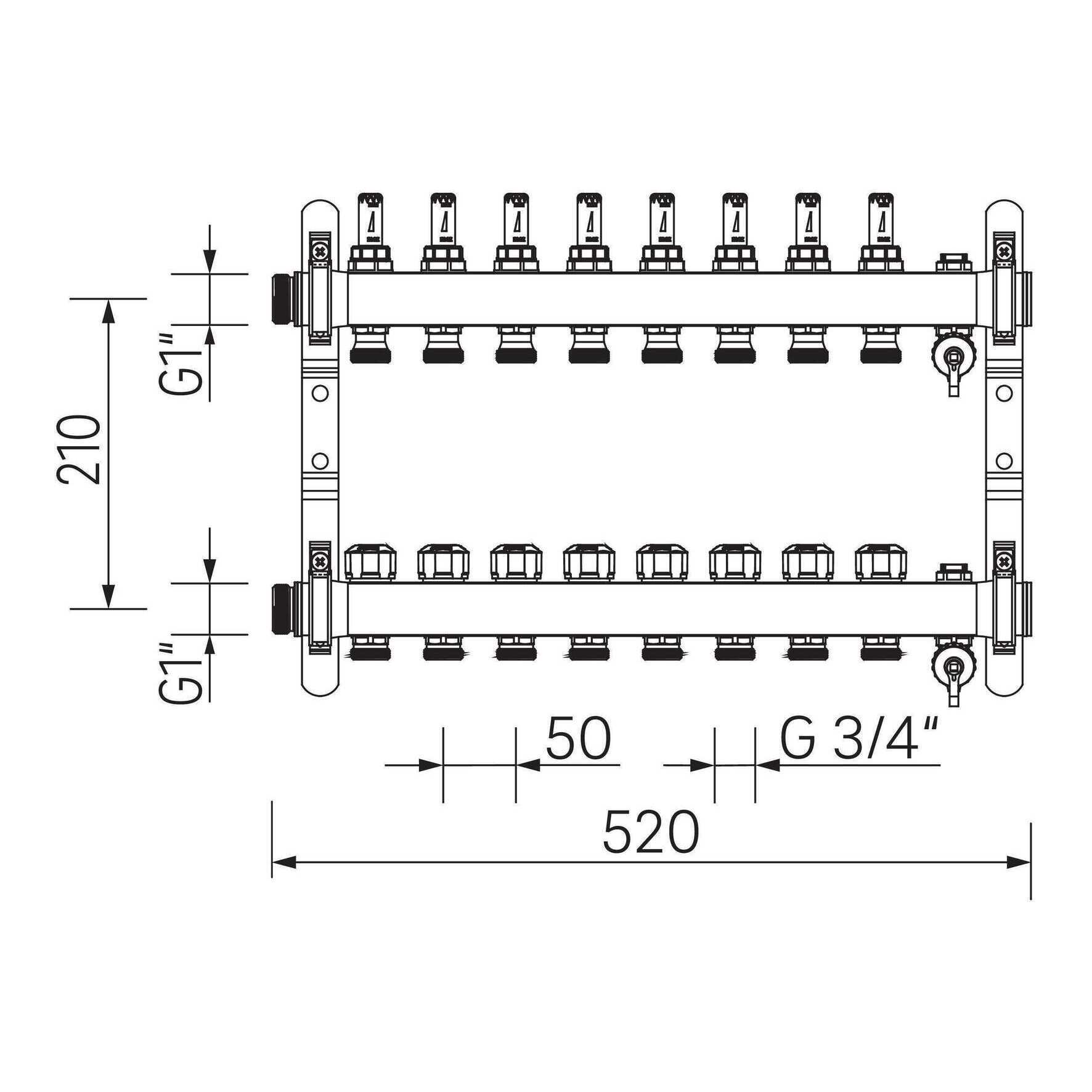Verdeler HKV-D 8-groeps Easyflow RVS MFI min/max incl. debietmeters REHAU