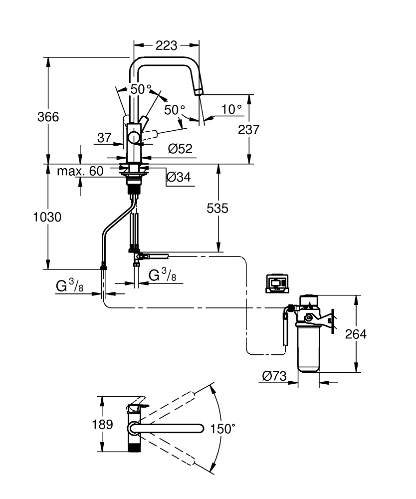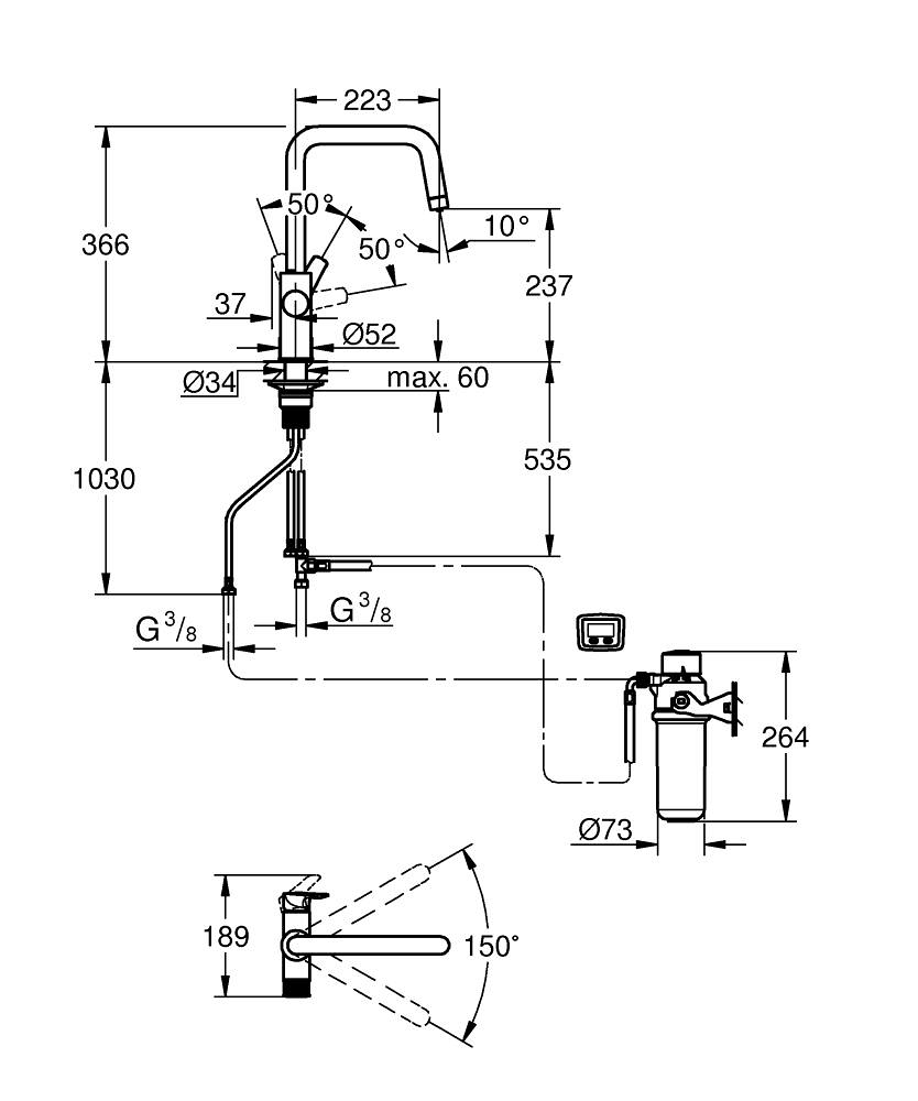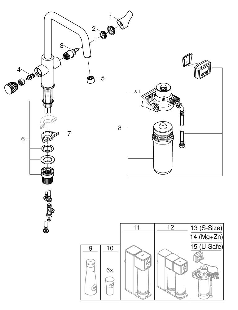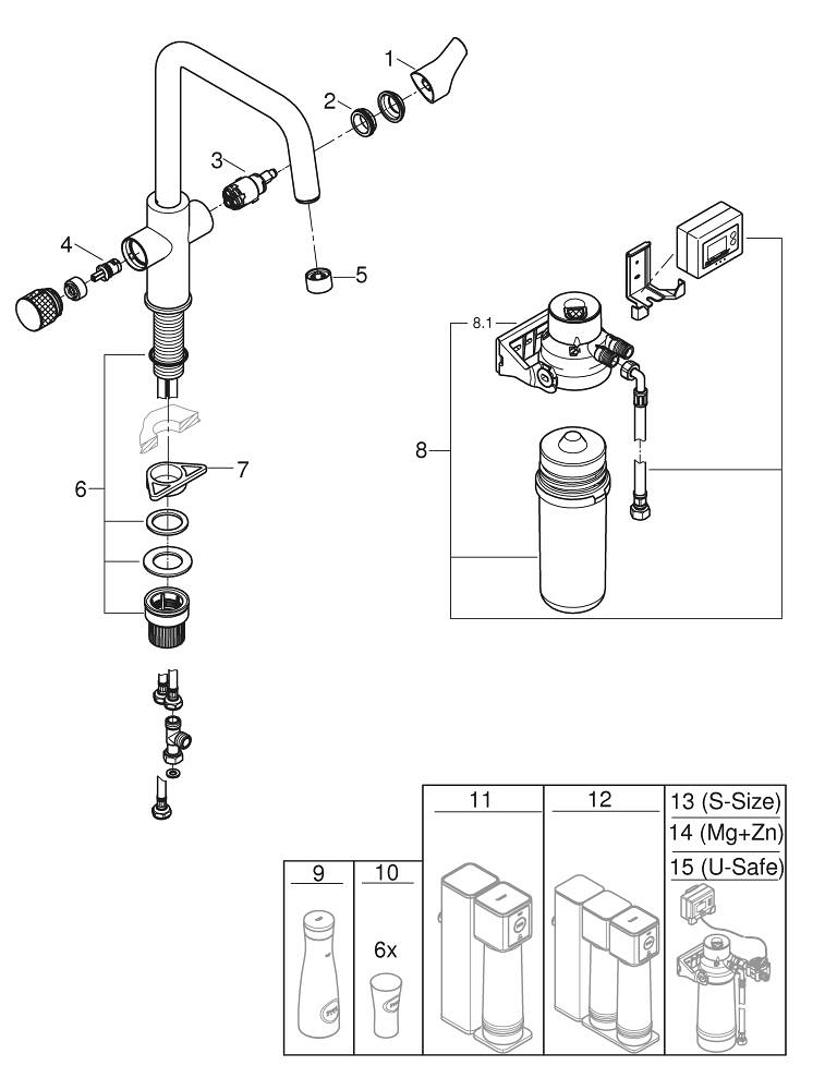 Starterkit keukenmengkraan Blue Pure Start U-uitloop met carbon waterfilter Grohe